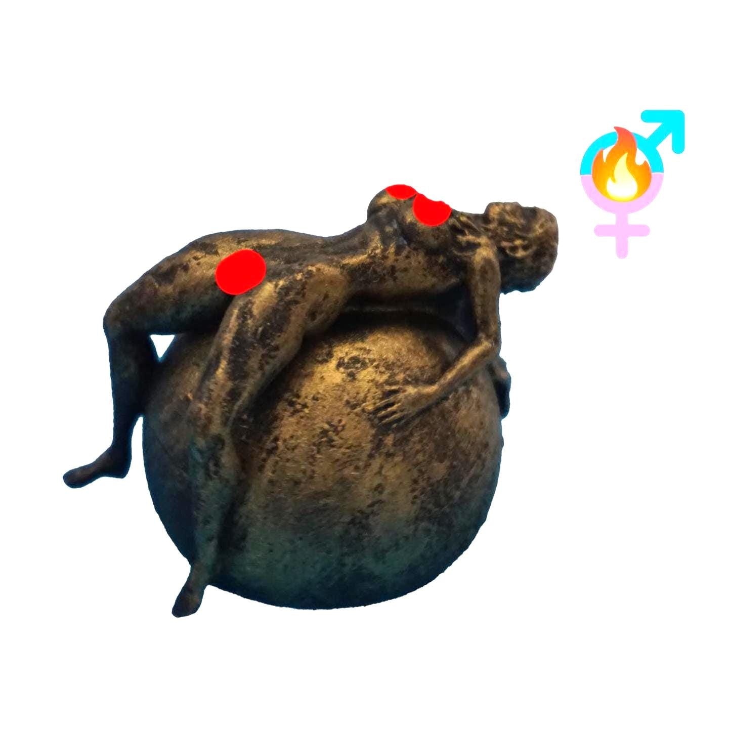 This handcrafted figurine shows a figure reclining gracefully on a spherical base, inspired by balance and modern expression. Painted by hand and created by a human artist. Offered in different colors and finishes, each piece is unique.